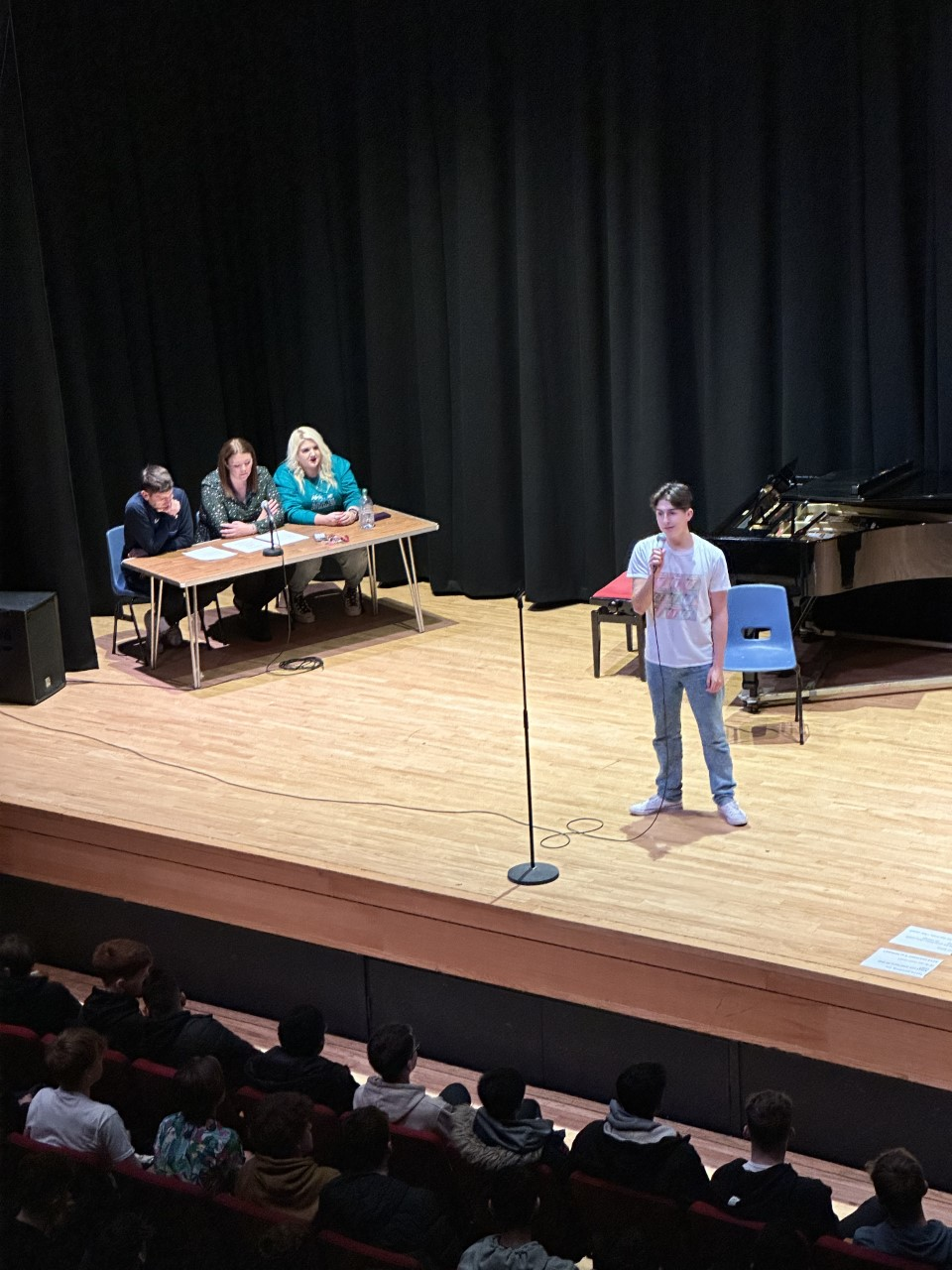 XX Factor brought together over 400 staff and students from Y10 upwards in The Cripps theatre and the calibre of student performing was outstanding - Mr Charadine, in his 7th year, ably and humorously hosting the event and our judges having really difficult decisions to make as only 7 from 14 could go through to the final today. Their choices seemed popular with the very supportive audience - we also had a surprise appearance of this year's staff band; Mrs Bradley-Brophy, Mr Kneeshaw and Mr Stark which brought the house down!