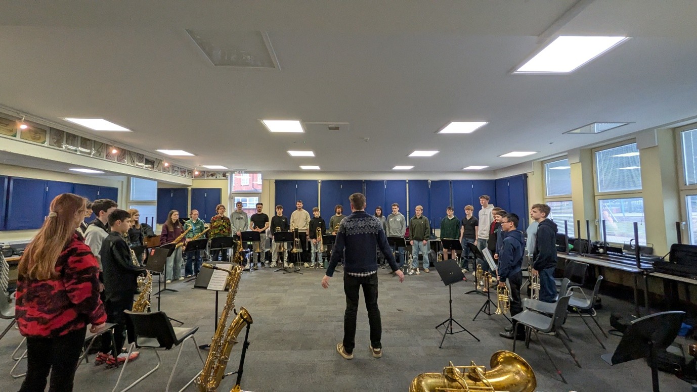 On Sunday, the music department welcomed the UK’s leading swing orchestra, Down for the Count, for an unforgettable day of workshops and performance. The orchestra worked with students throughout the day before joining them on stage for a collaborative concert in the evening.