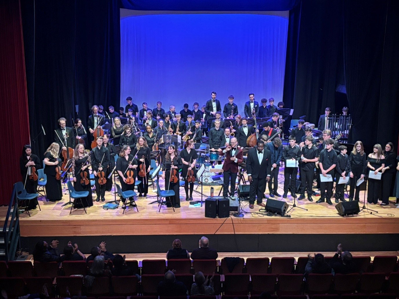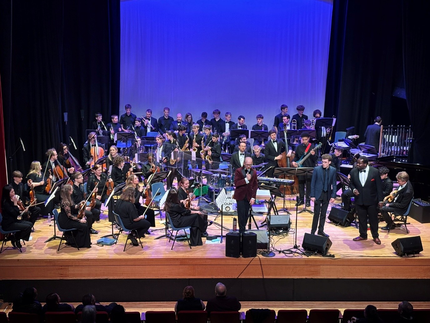 By 7pm, it was time to take to the stage. Looking effortlessly stylish, Down for the Count opened the concert before welcoming students to join them within the orchestra. Year 12 student; Noah Grant shone in a leading role on piano, earning warm praise from audience members during the interval. Our Big Band and Big Band 2 also delivered two outstanding solo performances each, leaving the visiting musicians hugely impressed by the talent, confidence and musicianship on display.