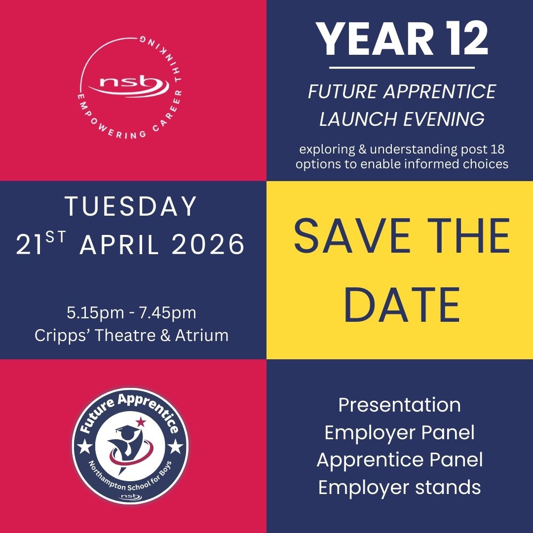 Finally, an early reminder that our annual Future Apprenticeship Evening is coming up on the horizon for Year 12. It is being held on April 21st and well worth all Year 12 students attending as Apprenticeships are an ever more popular and rewarding post A Level route!