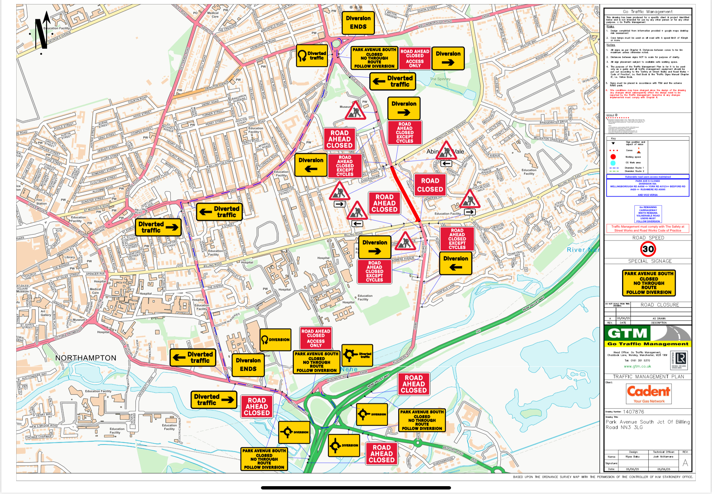 We have been advised by Cadent Gas contractor that there will be a road closure in place from Monday 5th January for three weeks on Park Ave South from Billing Road/ Billing Road East to Abington Park Crescent.