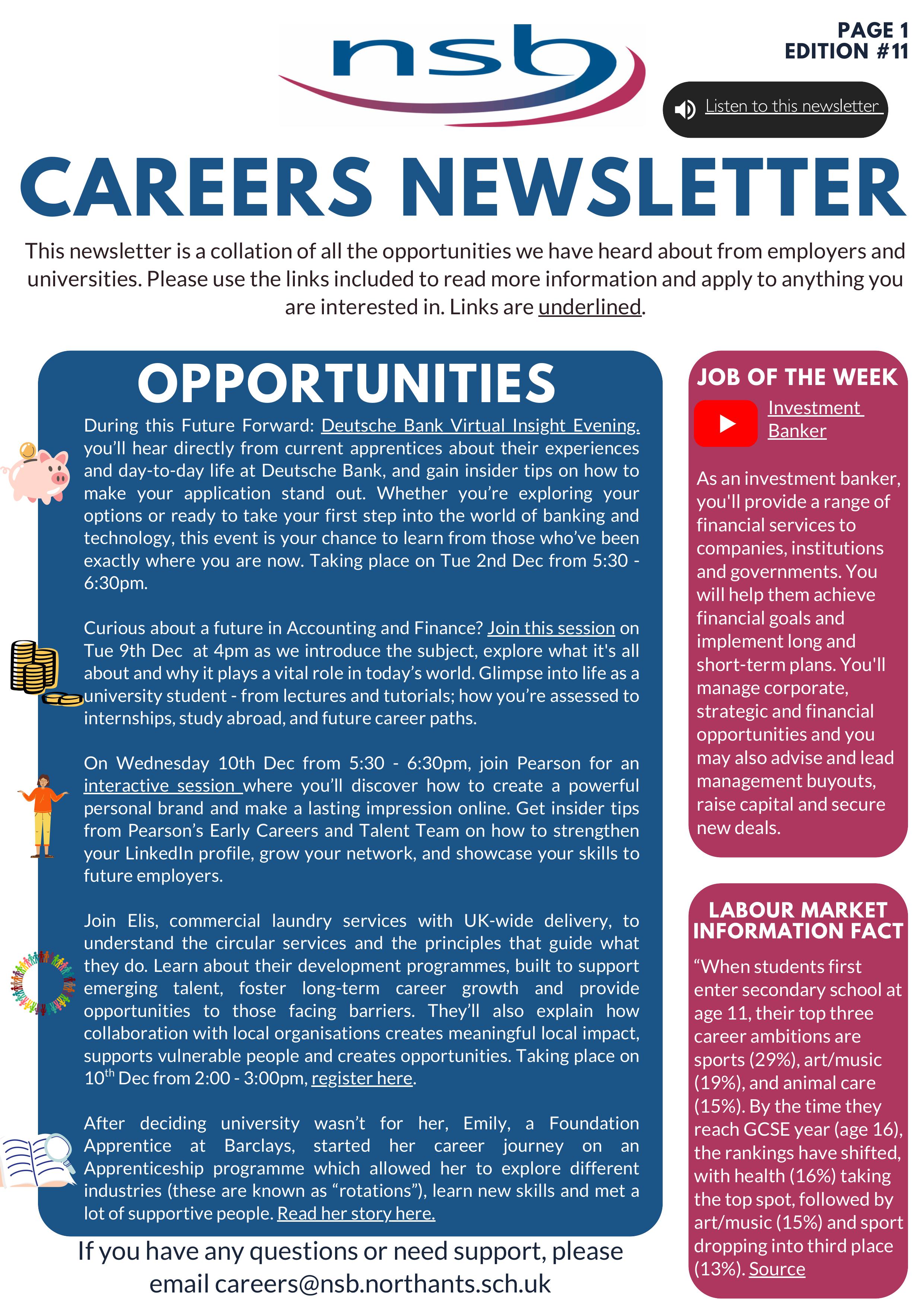 Please click here to view the PDF version with live links, and don't forget, you can listen to the Careers Newsletter podcast here.